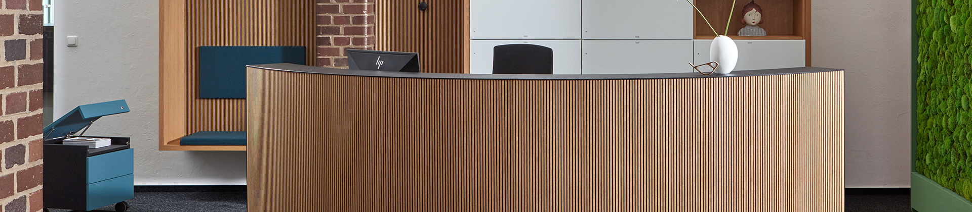 Die Empfangstheke ist die Visitenkarte jedes Unternehmens. Es ist ein Ort der Begegnung und des ersten Eindrucks. Hier treffen Menschen erstmals aufeinander. Hier werden Gäste empfangen, Telefonate geführt, Termine vereinbart. Kaum ein anderer Arbeitsplatz steht so im Zeichen der Öffentlichkeit. Entsprechend hoch sind die Anforderungen an Büromöbel im Empfang. Wenn Materialien, Farben, Form, Ausstattung und Anordnung passen, kann eine umfassende Willkommenskultur gelebt werden. Unsere Produktlinien 'basic C' und 'cockpit 2.0' bieten Ihnen vielfältige Möglichkeiten, um die Büroarbeit im Empfang bestmöglich zu unterstützen.