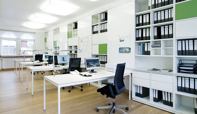 'basic S' steht für Individualität mit System: ein Regalsystem, das moderne Bürokonzepte auf vielfältige Weise bereichert. Die Basis: eine Vielzahl unterschiedlicher Regalmodule, die sich individuell kombinieren lassen. So entstehen Aktenregale, Ordnerregale und Bücherregale nach Maß mit quadratischer oder länglicher Fächeraufteilung. Zahlreiche Materialien, Farben und Ausstattungsmöglichkeiten stehen zur Auswahl. Alle Regalfächer können mit Auszügen, Hängeregistratur oder Flügeltüren organisiert werden. Dank seines modularen Charakters lässt sich 'basic S' immer wieder erweitern und ändern. Das Regalsystem ist kompatibel mit dem 'Schranksystem basic S' und geht mit vielen weiteren unserer Büromöbel wie dem 'Empfangssystem basic C' eine wirkungsvolle Verbindung ein.