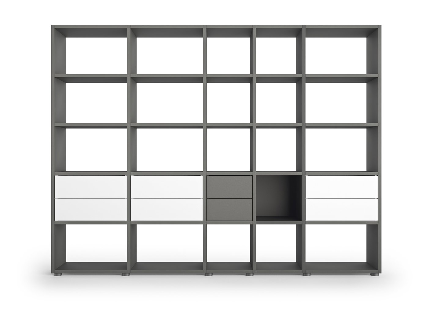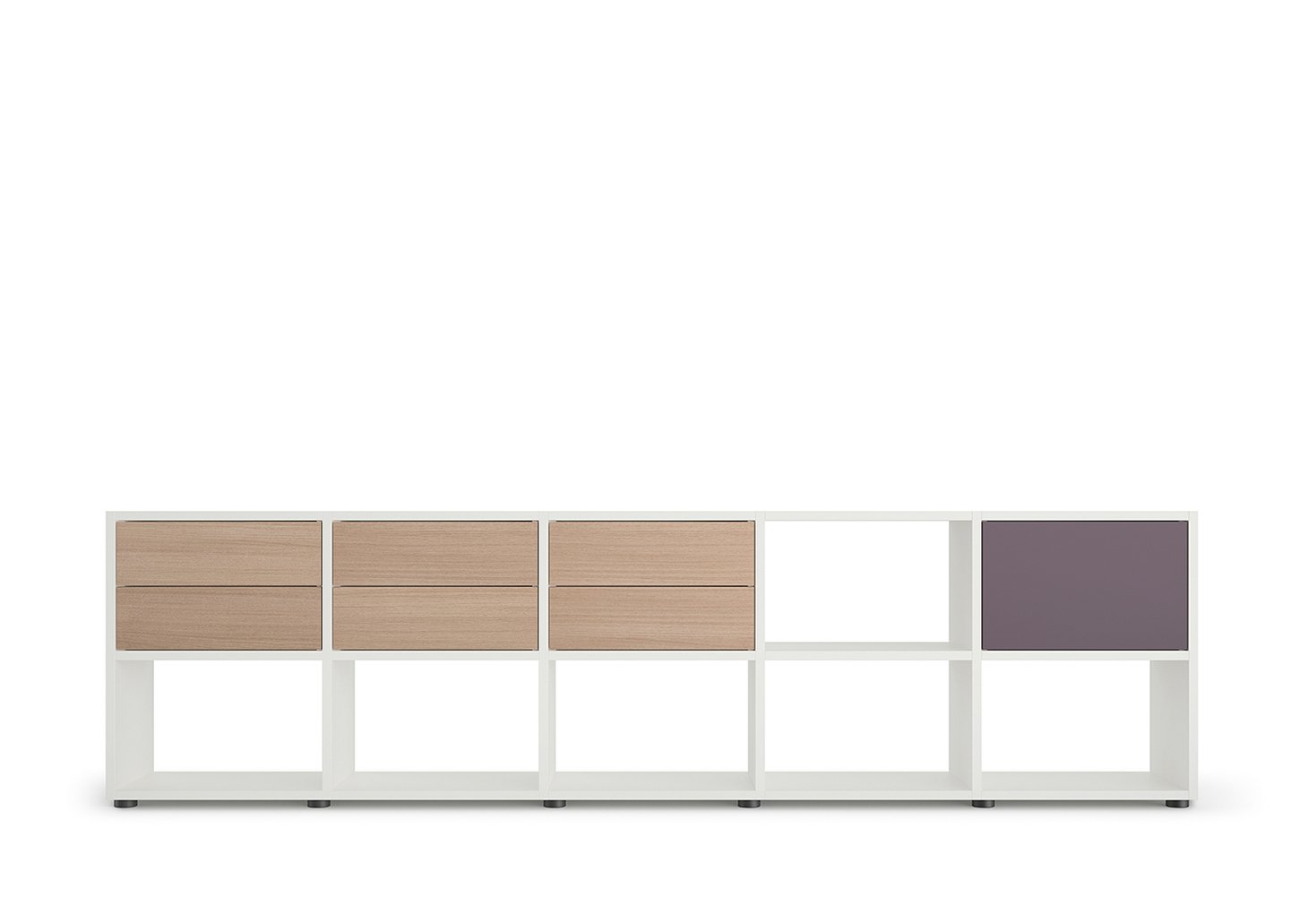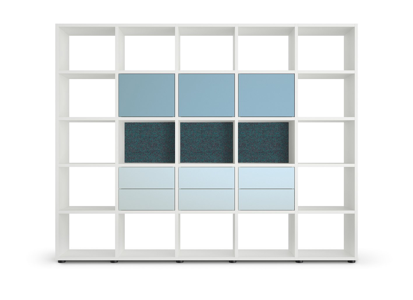 A home-like, attractive office environment – becomes a reality with 'basic view'. As a partially open shelving system, 'basic view' divides up rooms while permitting enticing glimpses through it. It is a fascinating blend of transparency and solidity that demonstrates its strengths against a wall as well as in the room. The office concept is changing? The wall shelf needs to become a room divider? 'basic view' has already planned for the future. The shelving system grows to suit your requirements. Back panels, drawers, push doors and fold-down fronts can be customised at a later date.