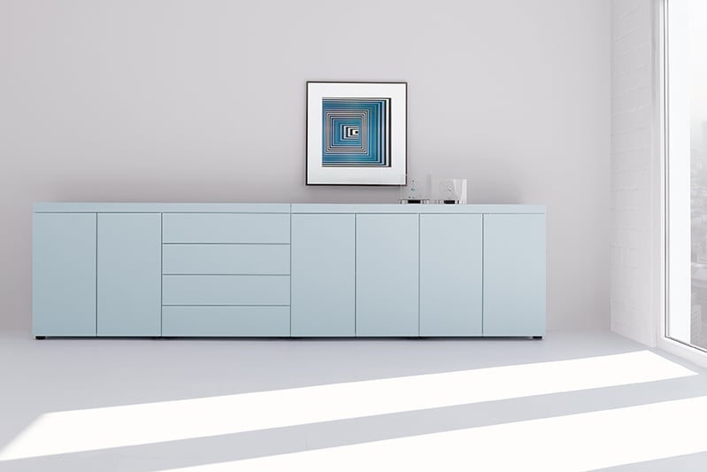 Less is more! Hardly any cupboard follows this maxim as consistently as 'basic cap'. Reduced to the essentials in design, perfectly thought out and precisely processed, this storage space concept exudes convincing simplicity. The basis is formed by simple basic elements added in a row, provided with opening fronts and a continuous cover base. 'basic cap' is available as a highboard, lowboard, sideboard or wall cabinet. In numerous colors, materials and designs. 'basic cap' is a cabinet that looks good on the wall or as a room divider.