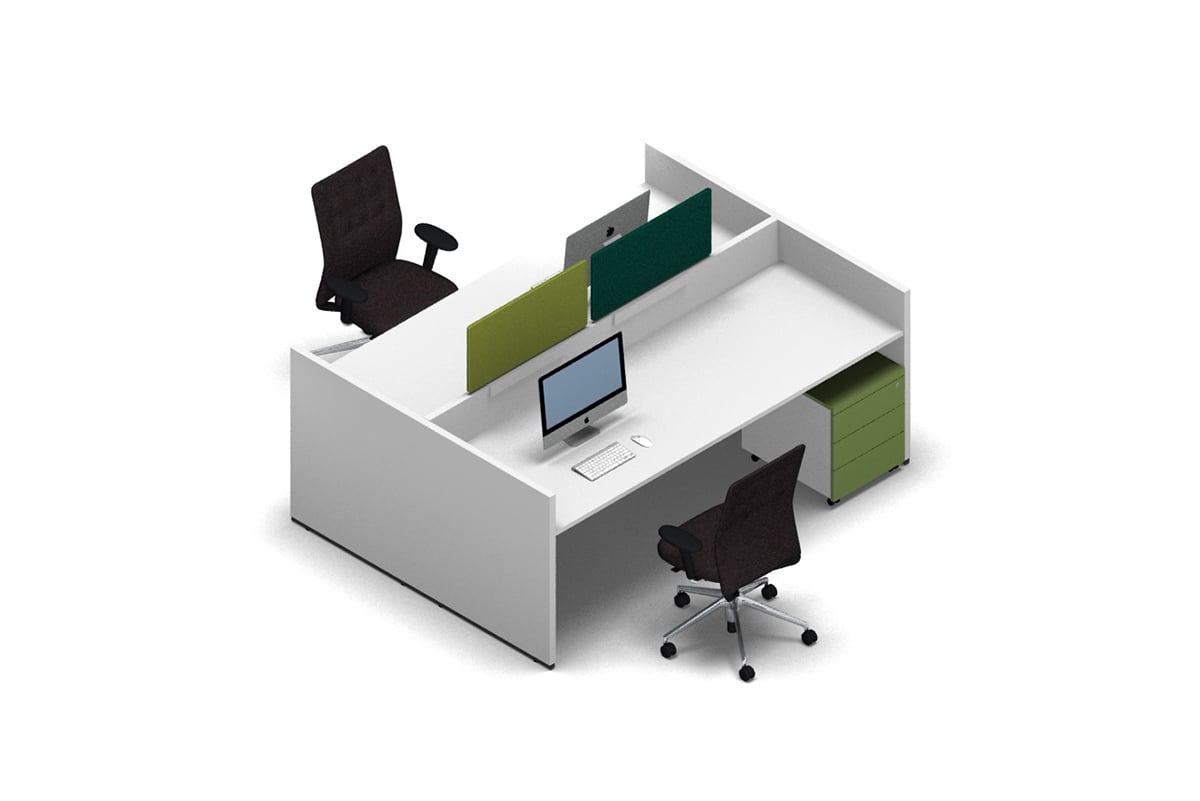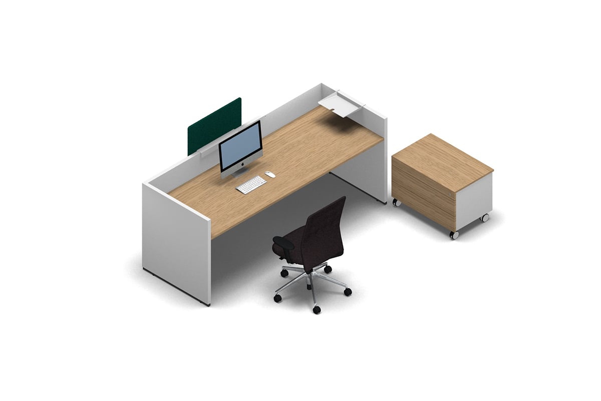 'basic C Work' offers users a wide range of design possibilities. The side sections of the 'basic C' desk are available in white, premium white and basalt grey, as standard. The sides can also be supplied with the usual standard single-colour decors or with real wood veneer, at the customer's request. Various real wood veneers are available for the table tops and screen panels, in addition to the 15 single-colour and wood grain decors. When covered in fabric or painted in a colour selected from the RAL and NCS range, the screen panels become a design accent in the room.