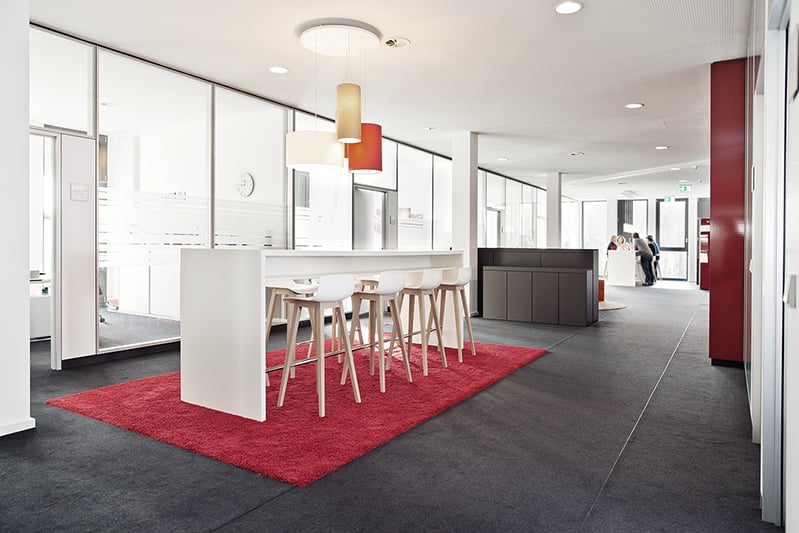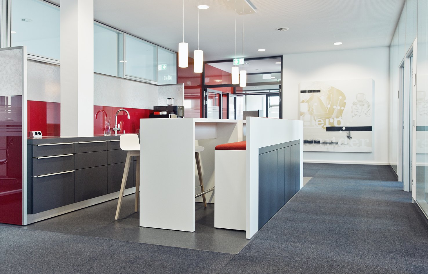 With reference to the basic cap style and the straight architectural lines of the DHPG building, the designers created distinctive tea kitchens, printer zones and communication elements – which add the perfect finishing touches to the overall concept.