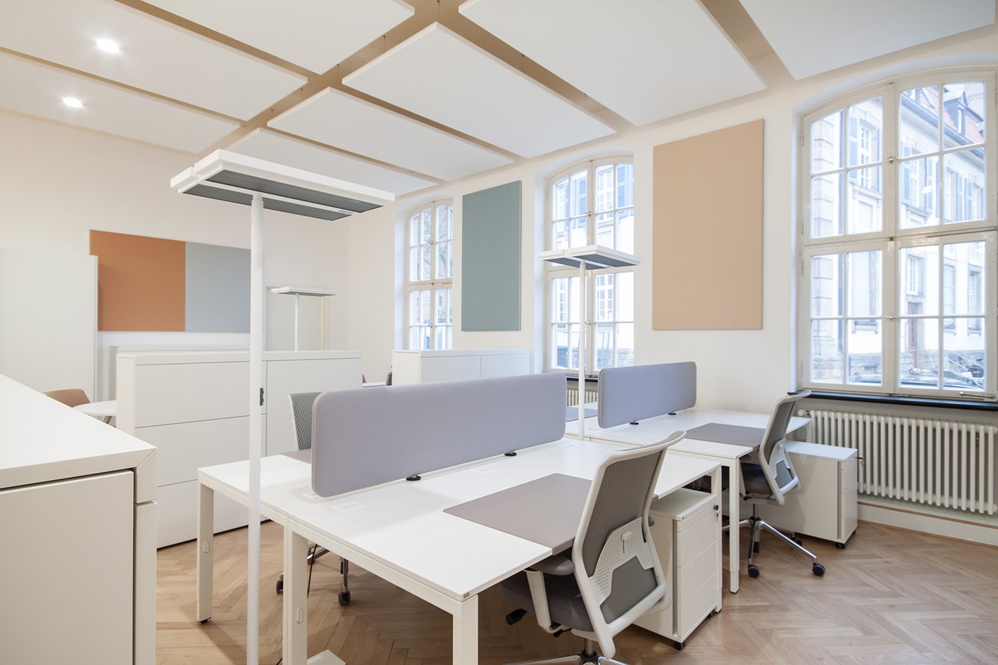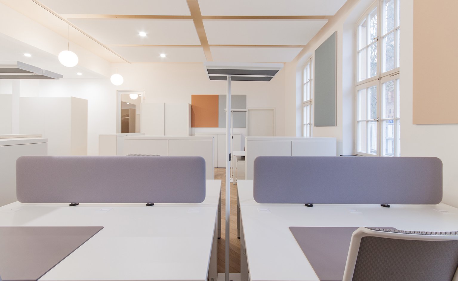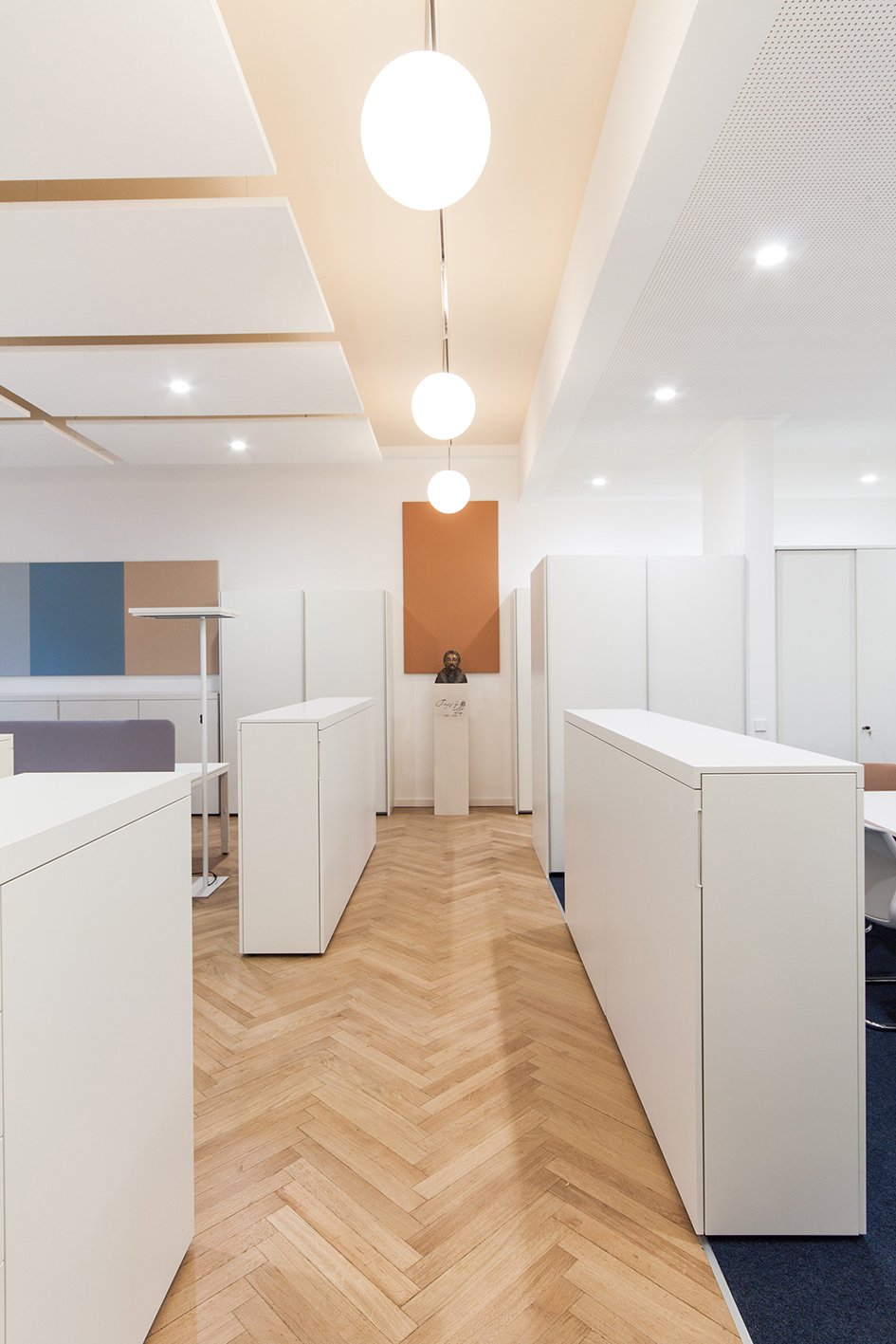 In order to allow daylight into all of the new work areas, the zoning of the various utilisation units was achieved by the careful positioning of storage furniture.