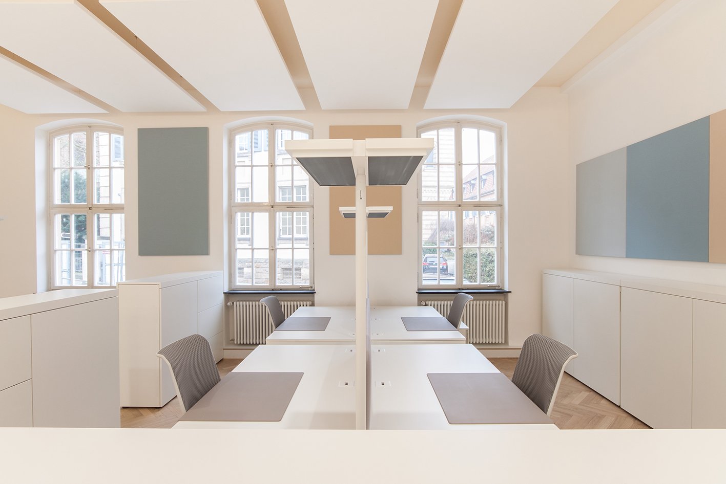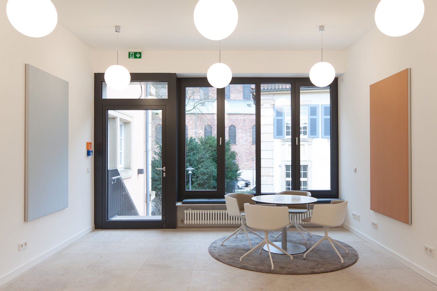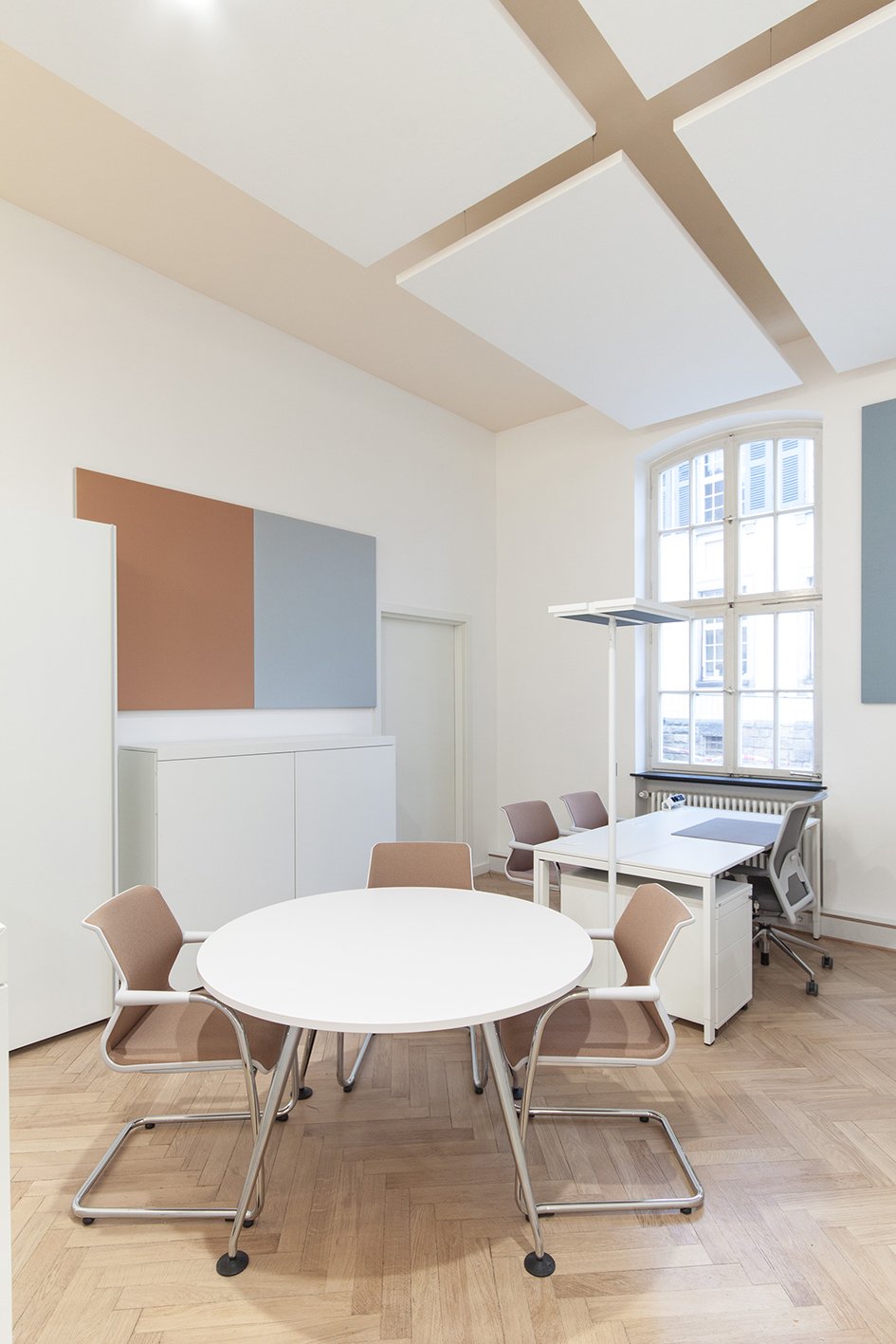 After the Pax-Christi Grand Parish was created from the merger of various individual parishes, the Friedrich-Spee-Haus, located close to the Kaiserdom cathedral, was selected as the future location of the parish's central office. The premises include a public waiting area and front office, and the group office with its large meeting area and archive zone creates a communicative environment for the complex administrative work of the parish.