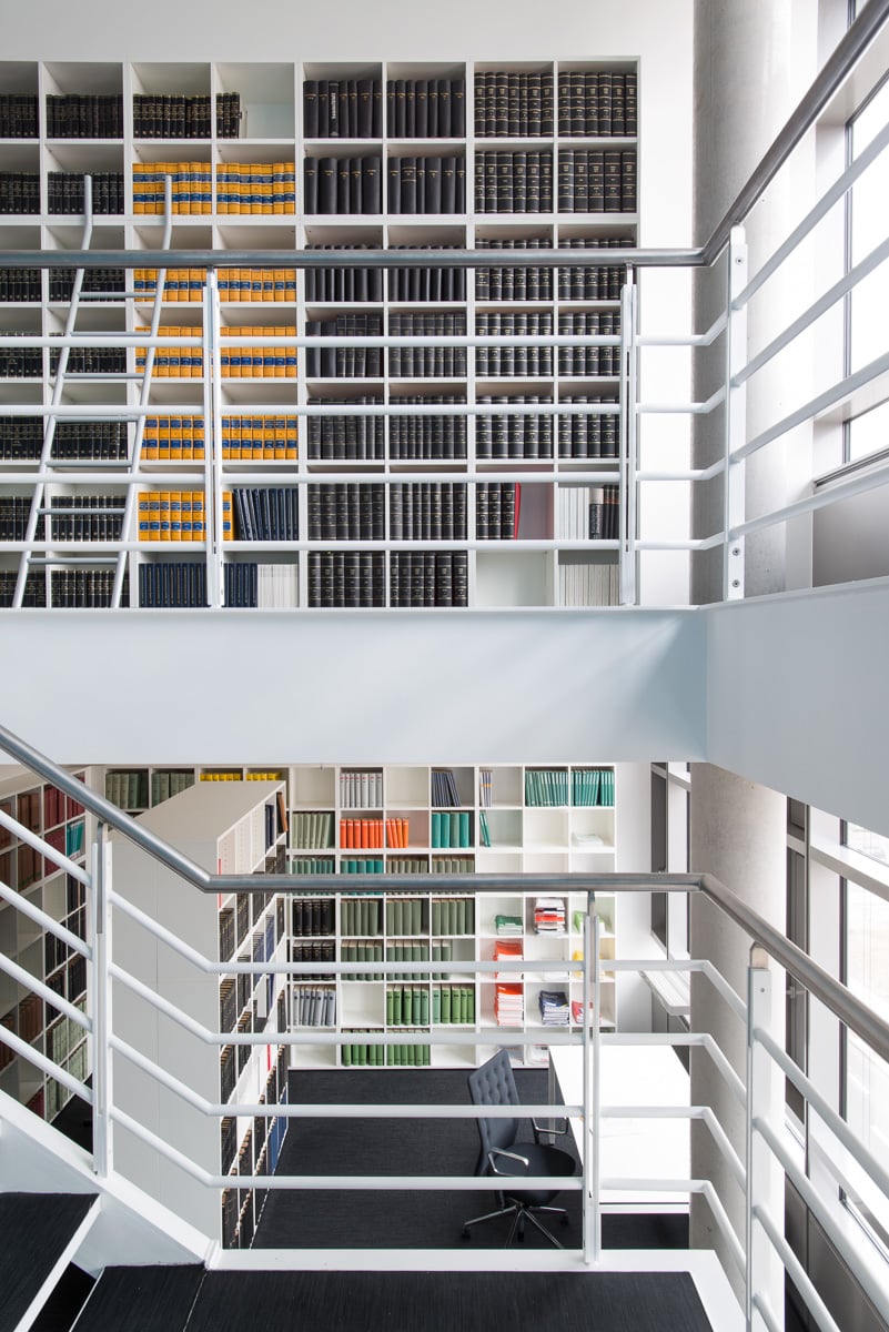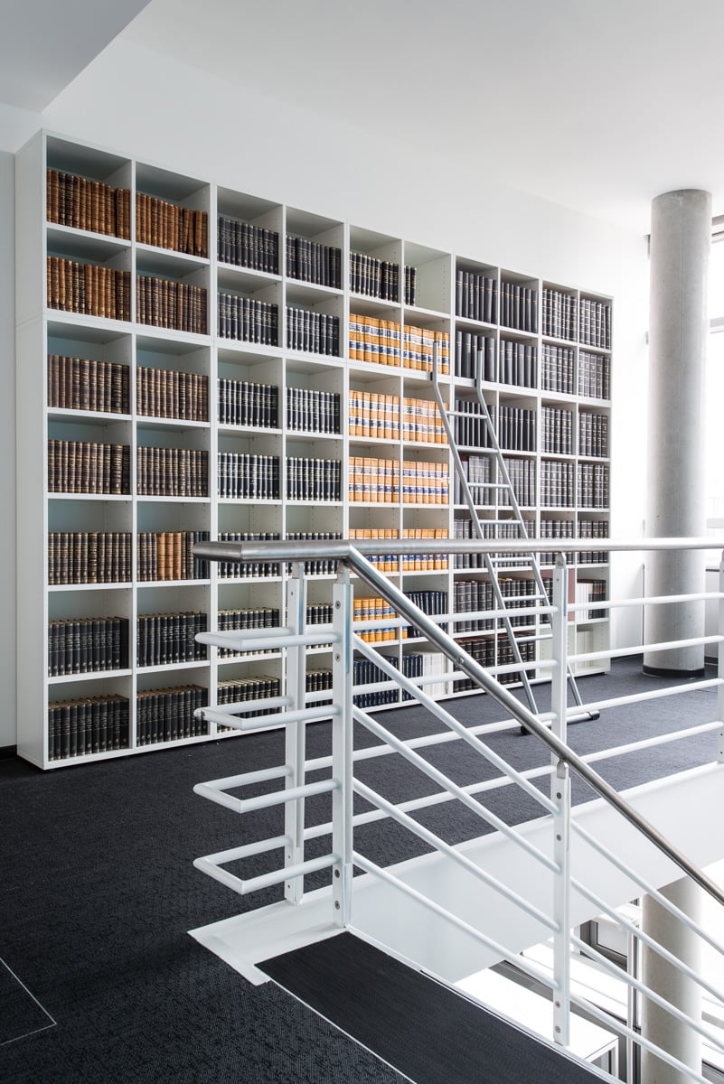 Room was made to provide the required storage space in the offices, cloakroom, and particularly in the company's own extensive library – with the highly functional basic S Shelf System from werner works.