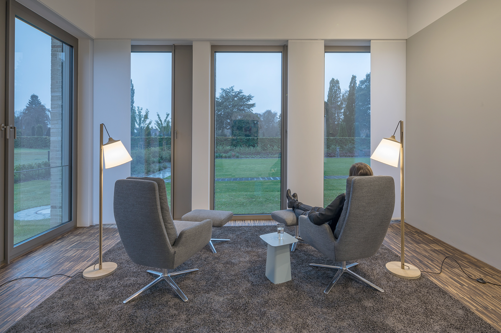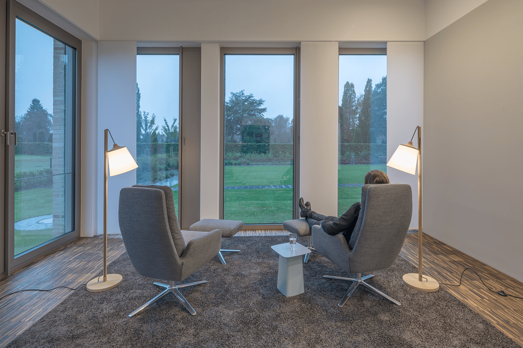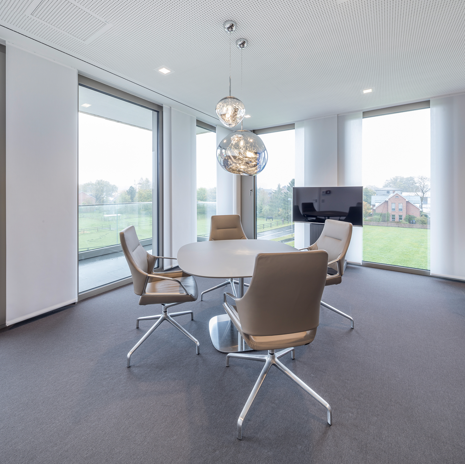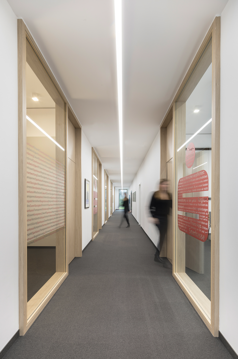 The administration headquarters, which are particularly environmentally friendly and have a green building certificate to prove it, sport a brick façade that demonstrates the Sparkasse's regional solidarity. In the middle of the town yet still in green surroundings, a place for better communication and interaction has been created. The meandering form of the building not only offers wide views of the landscape, but also creates height and meeting points.