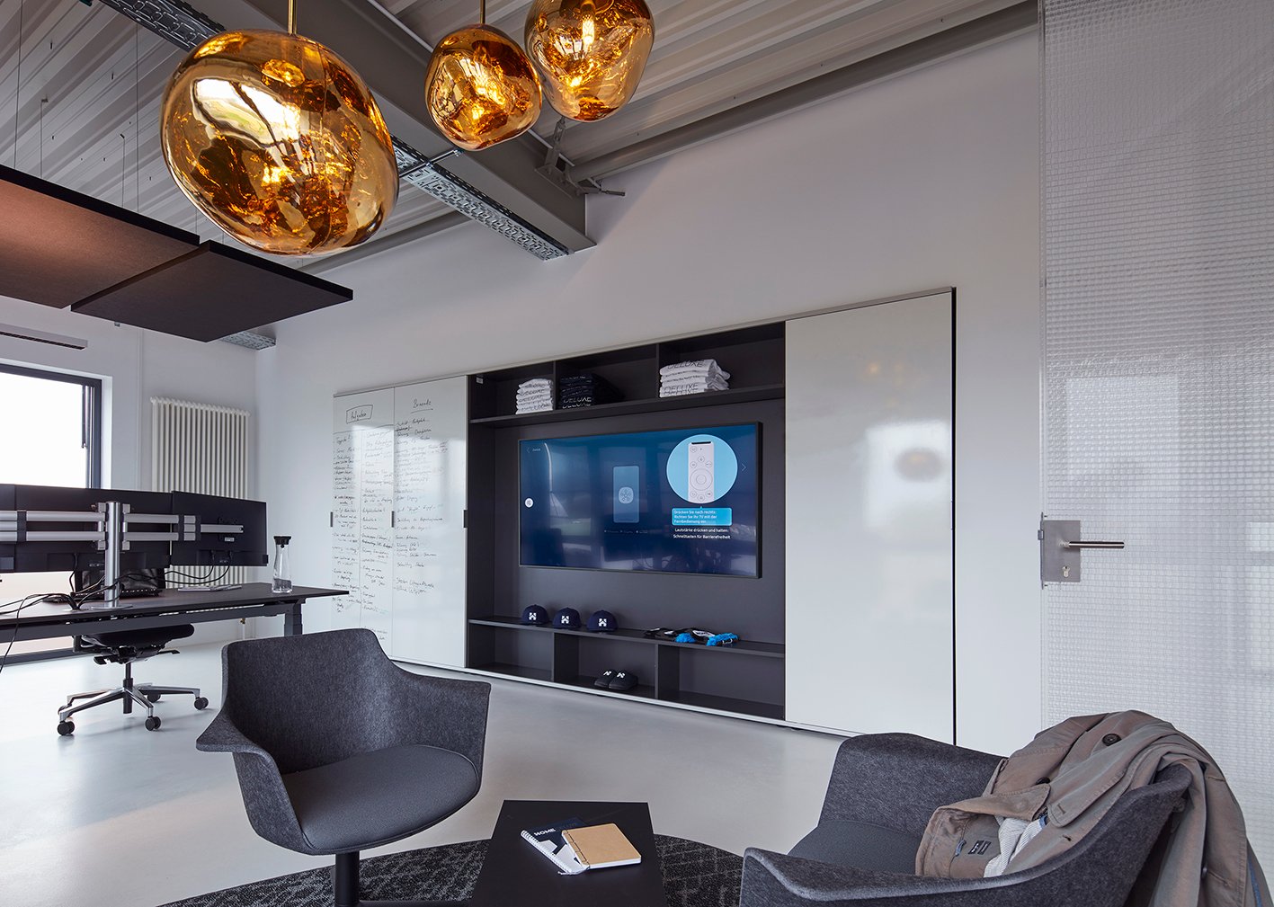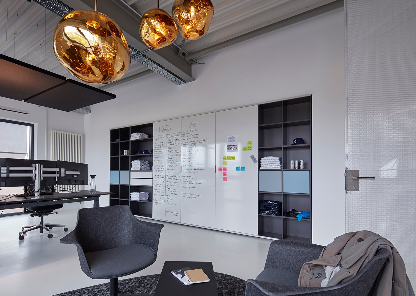 Ein Baustein zu der zweiten Vision des Unternehmers "ein hervorragender Arbeitgeber zu sein und eine angenehme Arbeitsatmosphäre zu schaffen, in der es Spaß macht zu arbeiten", wurde mit der Einrichtung der neuen Büroimmobilie in Holzhausen/Lübbecke erreicht. Offene, moderne Büroräume mit attraktiven Treffpunkten für alle Mitarbeiter und zugleich Rückzugsmöglichkeiten für konzentriertes Arbeiten, waren die Wünsche von Home Deluxe. Das Ziel war es, trotz rasanten Wachstums, immer ein familiäres und lebendiges Arbeitsumfeld mit flachen Hierarchien und kurzen Entscheidungswegen zu erhalten. werner works konnte vom Empfang bis hin zu den Gemeinschaftsbereichen und dem Büro des Geschäftsführers einen Beitrag zum neuen, lebendigen Büroambiente leisten.