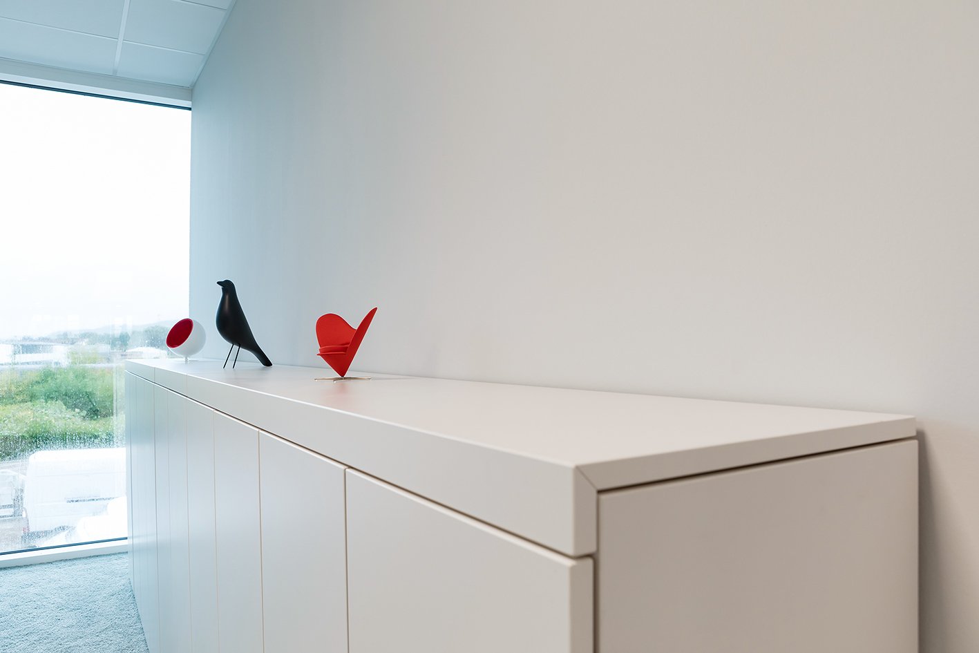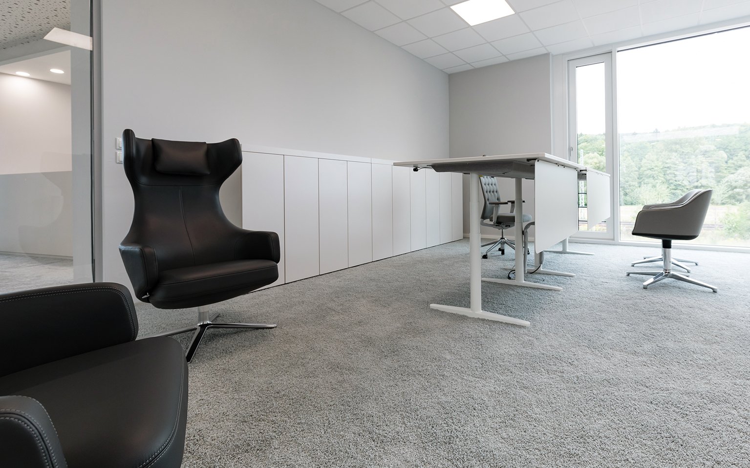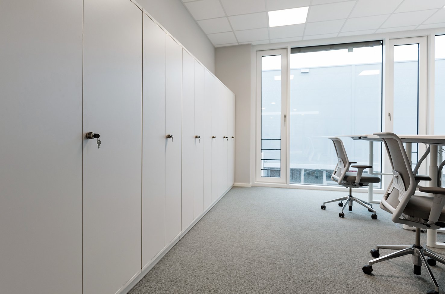 In den Einzelbüros sind abgestimmt auf das Materialkonzept der vitra-Tische Schränke der Produktlinie basic cap von werner works im Einsatz.