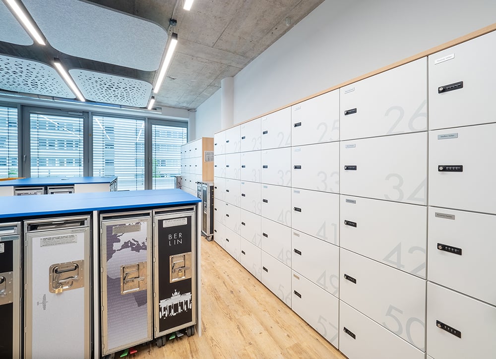 Unsere 'Lockerschrankanlagen' bietet den Mitarbeitern in dieser dynamischen Arbeitswelt einen sicheren Ort zur Aufbewahrung persönlicher Gegenstände. Zugleich sind sie Treffpunkt für soziale Kontakte und ein konstanter Knotenpunkt im Unternehmen für hybrides Arbeiten.